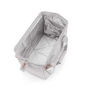 הוא כולל פתיחה רחבה עם מסגרת מתכת פנימית, שמונעת מהתיק להיסגר כאשר אתה מכניס או מוציא פריטים.